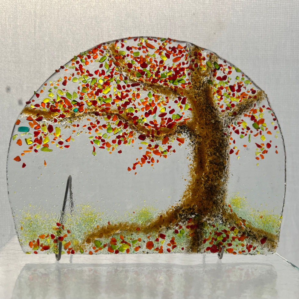 Each landscape is hand made, and unique, using fusion art glass. Stand included. The photo images are a representation of composition and colour. Your art piece will be a reasonable reproduction and not an exact duplication of the photo image shown.