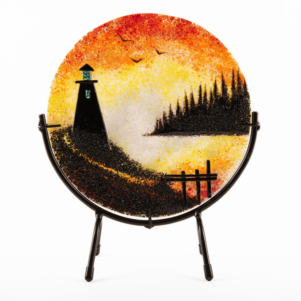 Each piece is hand made, one-of-a-kind and unique, produced using Oceanside 96 fusion glass. The photo images are a representation of composition and colour. Your art piece will be a reasonable reproduction and not an exact duplication of the photo image.
