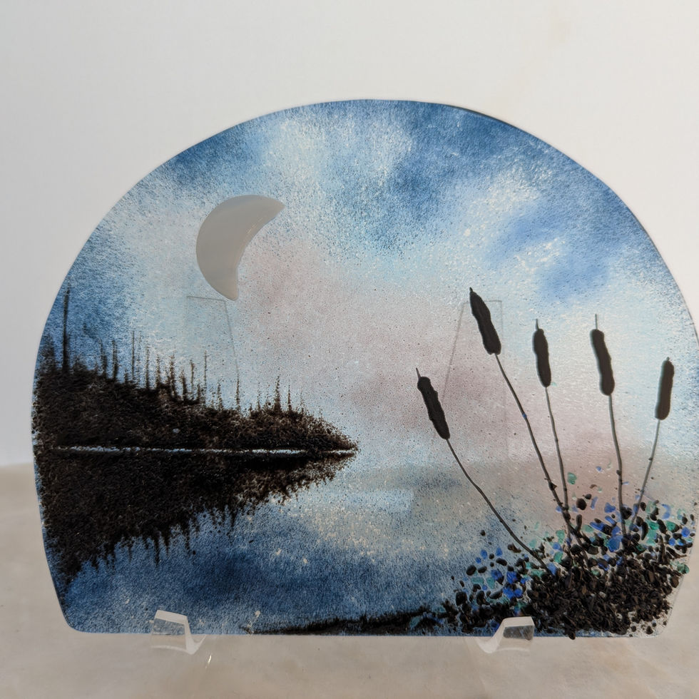 Each landscape is hand made, and unique, using fusion art glass. Stand included. The photo images are a representation of composition and colour. Your art piece will be a reasonable reproduction and not an exact duplication of the photo image shown.