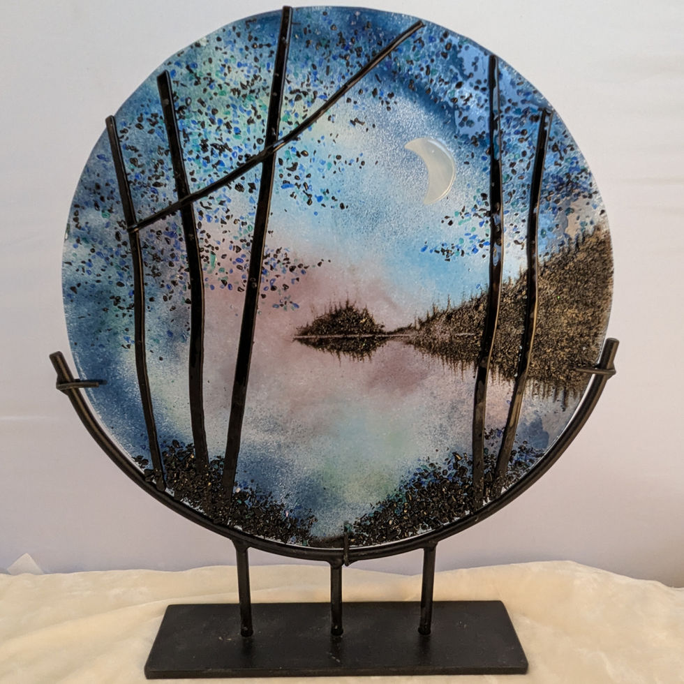 Each landscape is hand made, and unique, using fusion art glass. Stand included. The photo images are a representation of composition and colour. Your art piece will be a reasonable reproduction and not an exact duplication of the photo image shown.