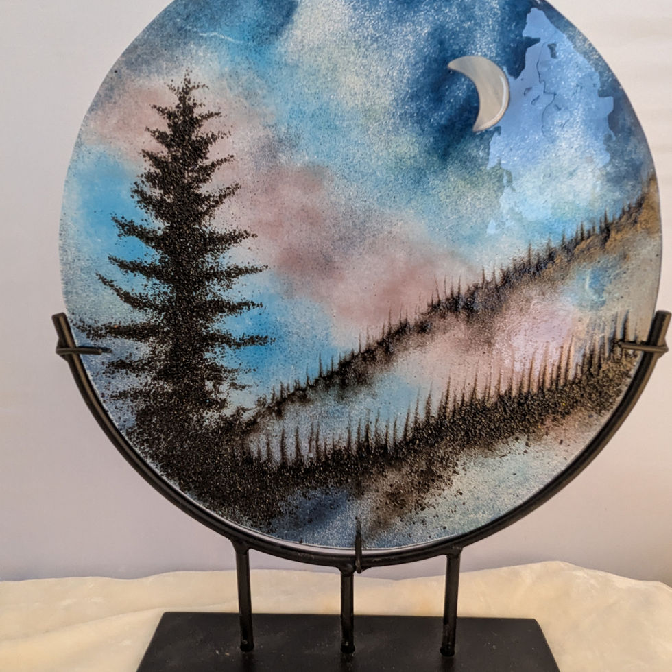 Each landscape is hand made, and unique, using fusion art glass. Stand included. The photo images are a representation of composition and colour. Your art piece will be a reasonable reproduction and not an exact duplication of the photo image shown.