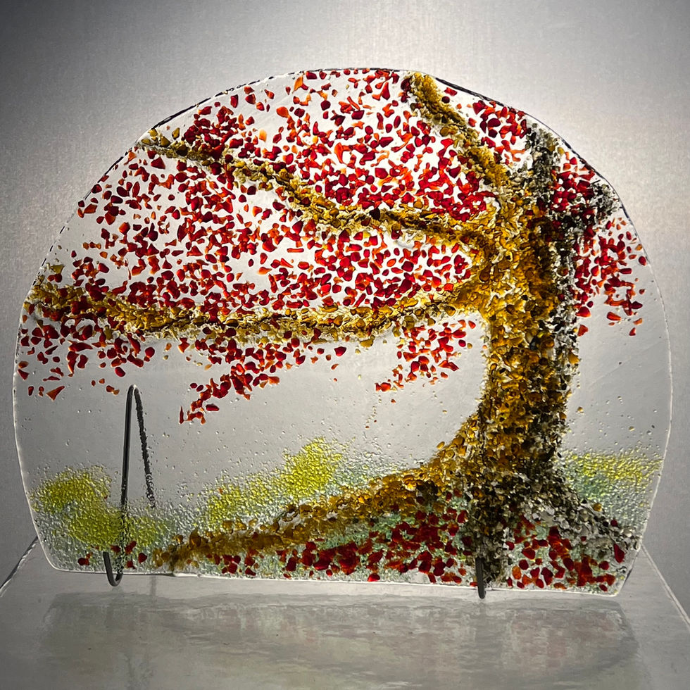 Each landscape is hand made, and unique, using fusion art glass. Stand included. The photo images are a representation of composition and colour. Your art piece will be a reasonable reproduction and not an exact duplication of the photo image shown.