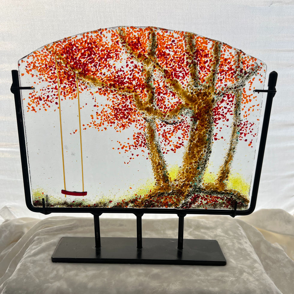 Each landscape is hand made, and unique, using fusion art glass. Stand included. The photo images are a representation of composition and colour. Your art piece will be a reasonable reproduction and not an exact duplication of the photo image shown.